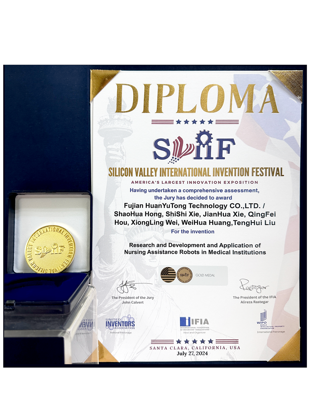 近期,2024美国硅谷国际发明展(SVIIF)于7月25至28日在加利福尼亚圣克拉拉举办。此展会是世界上最具影响力的国际发明展之一,在全球创新研发领域享有盛誉。本届展会共展出上千项全球顶尖的科研成果,经过多轮专业评审与选拔,九州酷游参展的医疗组织护理辅助机器人的研发及应用脱颖而出,斩获金奖